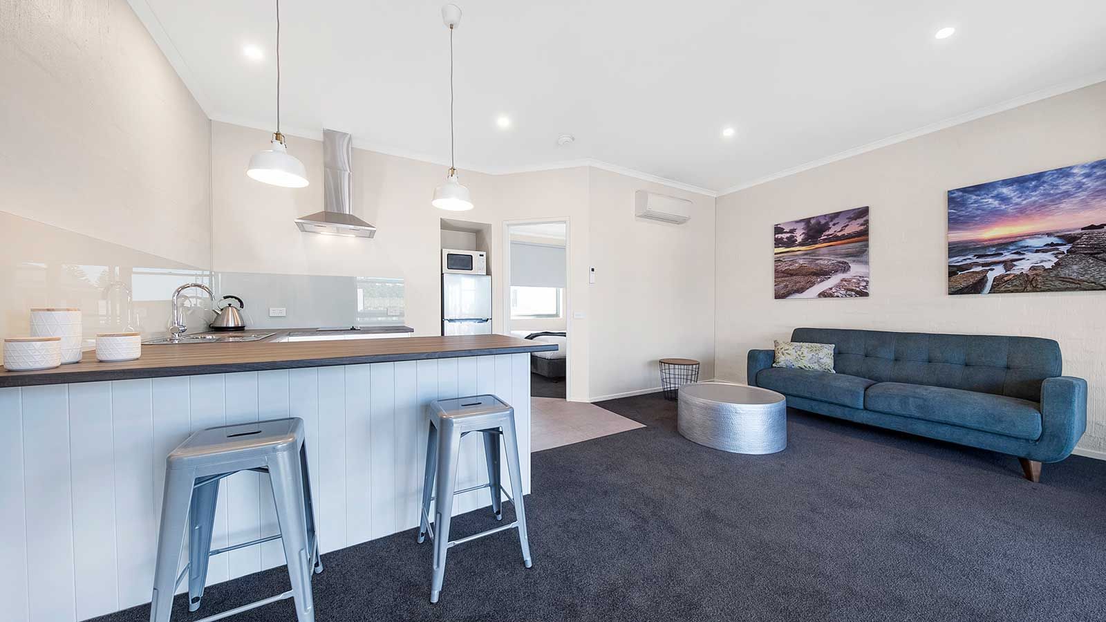 Moonlight Bay features 1 & 2 Bedroom Apartments and Spa Studios making it perfect for a family holiday or a couple’s getaway. With ground floor and first floor options, all rooms have self-catering facilities including fridge, microwave oven, cooktop, cutlery, crockery and cooking equipment, giving you the option of dining in or discovering the restaurants and eateries within Rye and its surrounds.